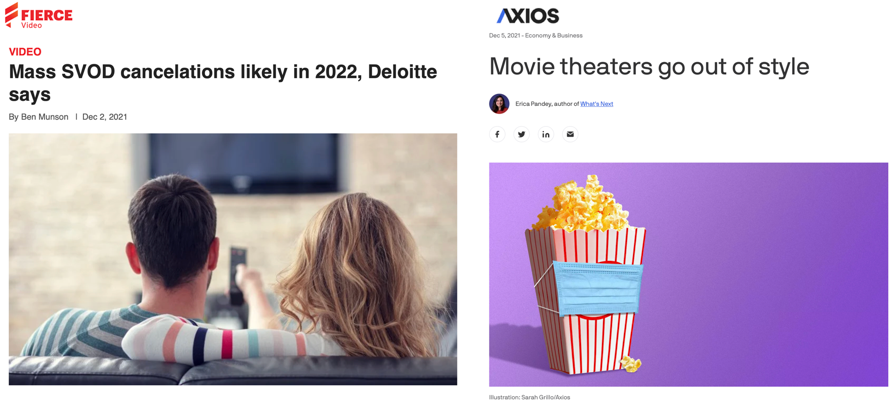 According to Deloitte, shifts in consumer behaviors and a glut of subscription choices is likely to lead to as many as 150 million subscribers cancelling in 2022. Opting instead to “dip in and dip out” of services based on projects they want to see… a potentially catastrophic trend for SVOD services whose share prices are dictated by subscriber growth - and an even greater threat to the producers and studios that have become reliant on big budget projects paid for by the streaming giants.